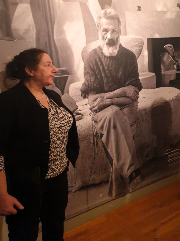 De groep werd door de gids rondgeleid die haarfijn de filosofie van Brancusi uitlegde: 'In de kunst is eenvoud geen doel, maar men komt door het benaderen van de ware betekenis van de dingen, ondanks zichzelf, tot eenvoud.'