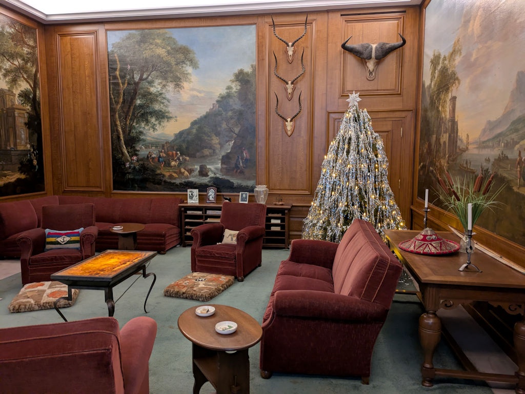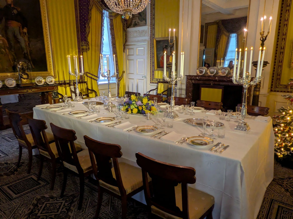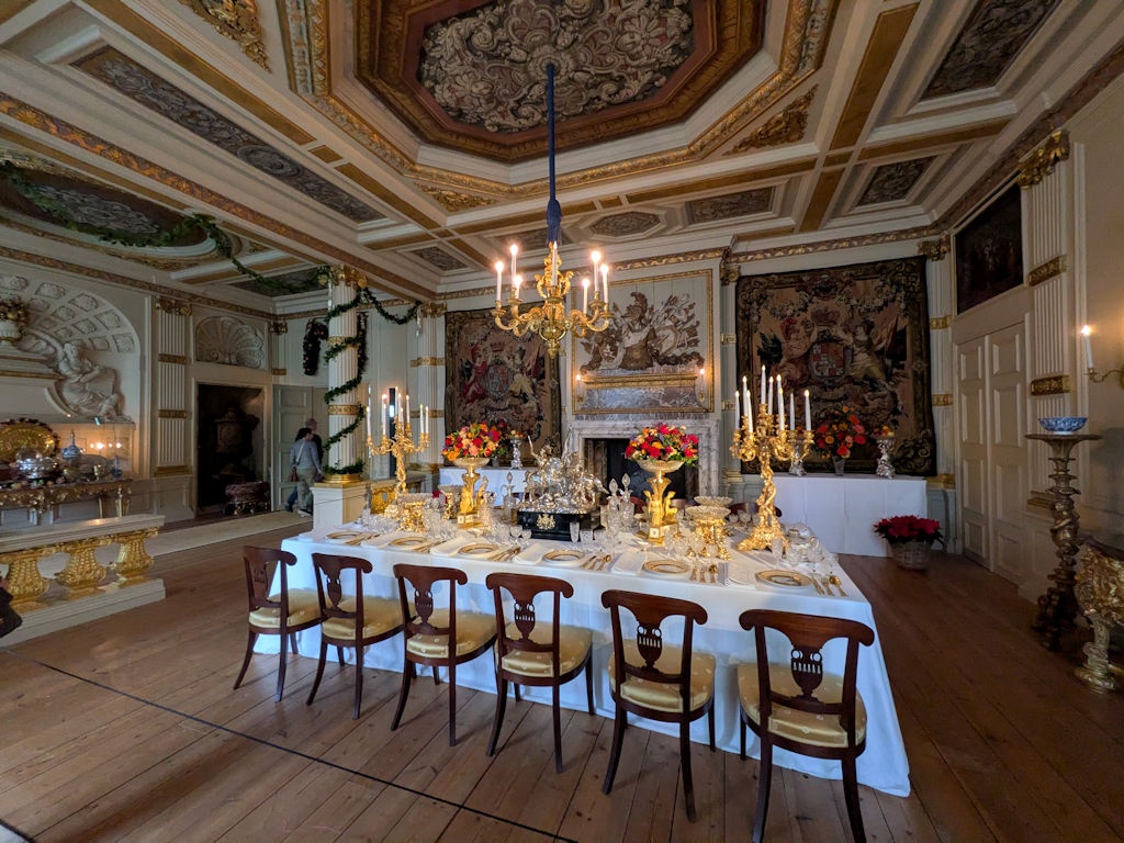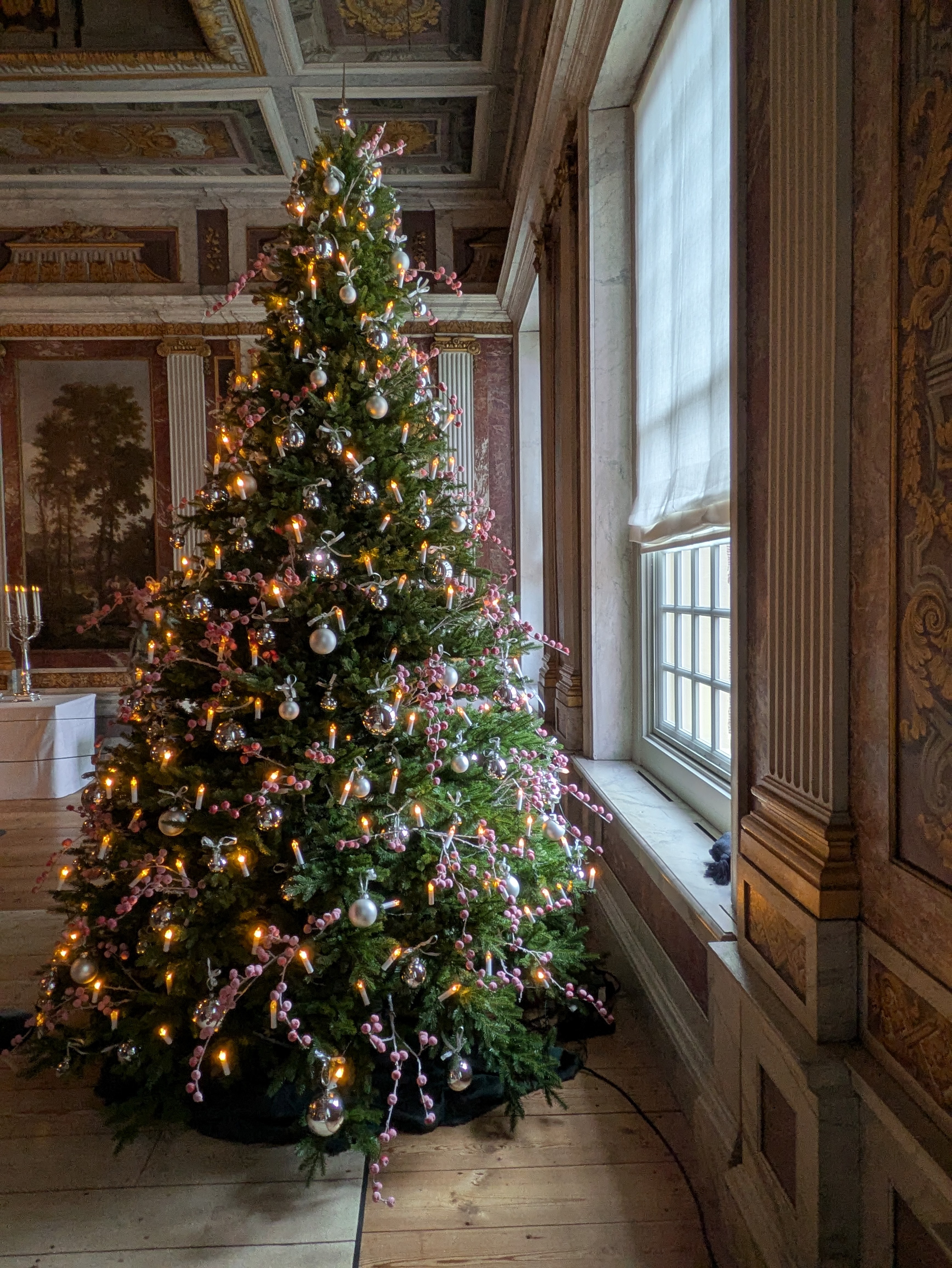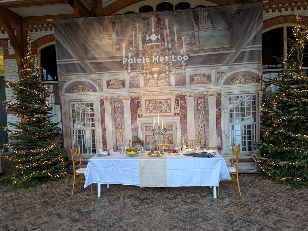 In het paleis waren de kamers en kerstbomen gedecoreerd zoals in de tijd dat de koninklijke bewoners er kerst vierden. De tafels feestelijk gedekt met prachtige serviezen en veel groenversiering, lekkernijen en feestelijke kleding van de Oranjes.
