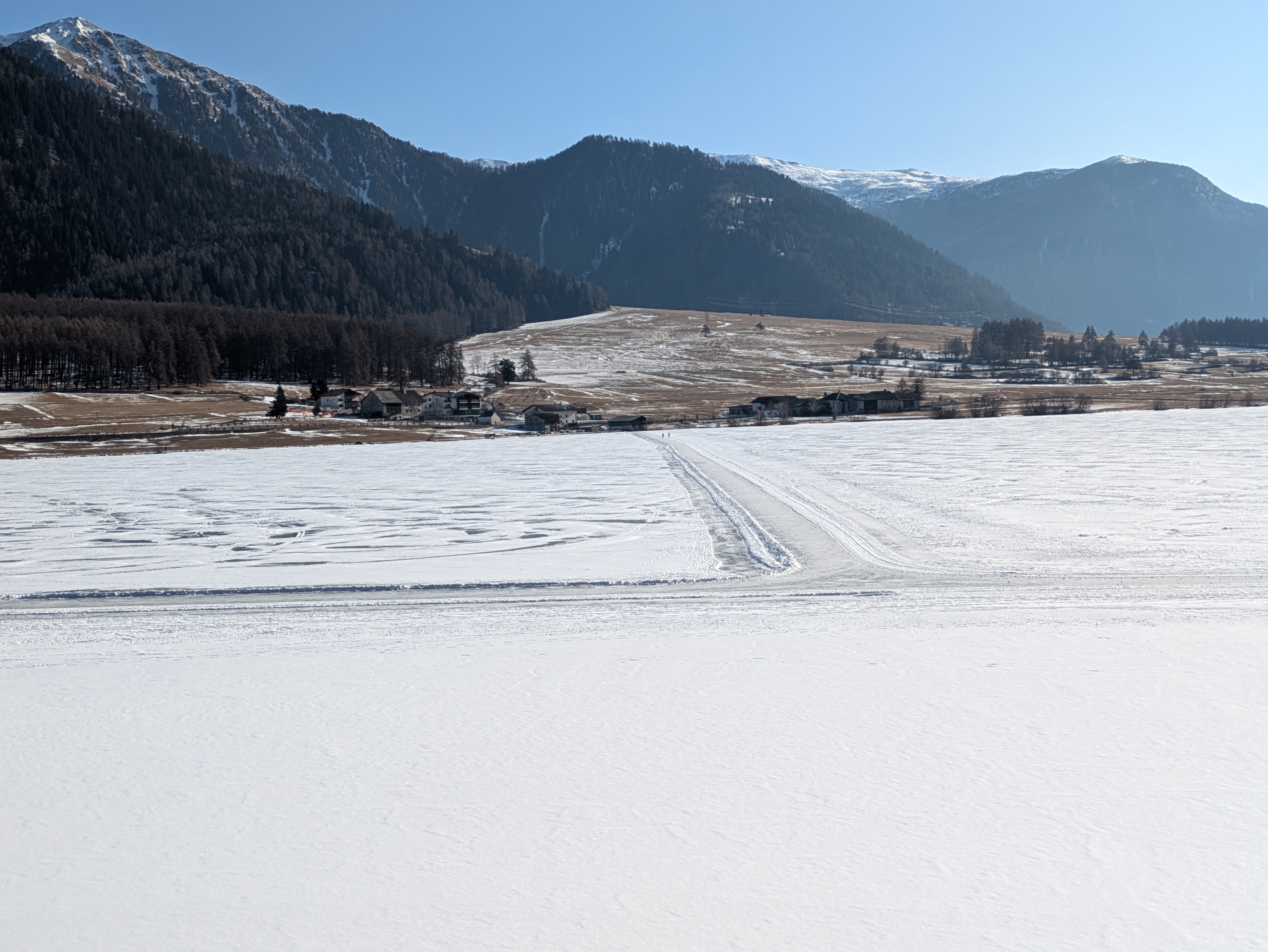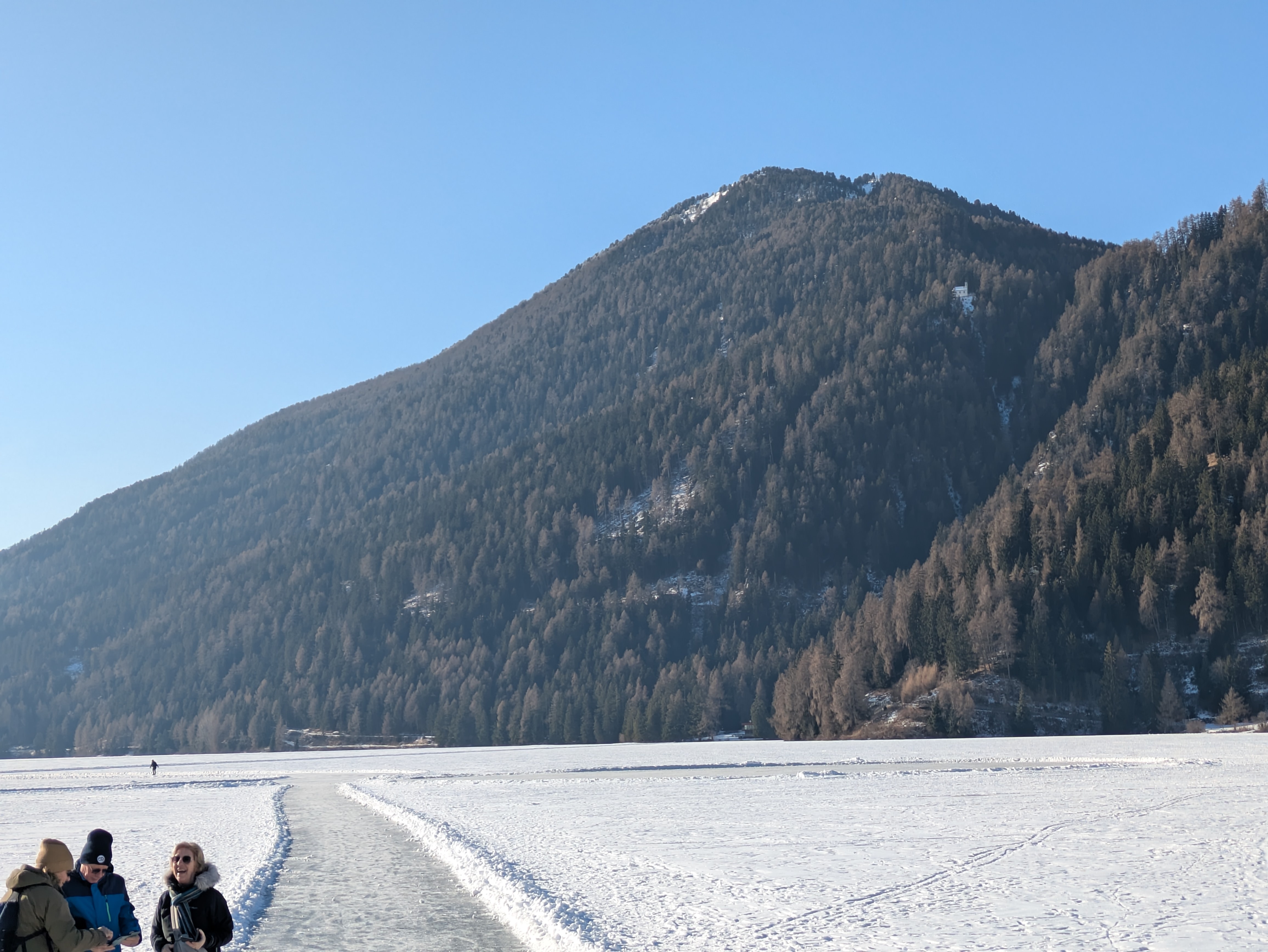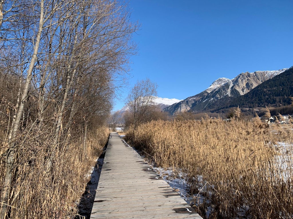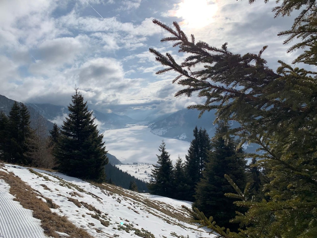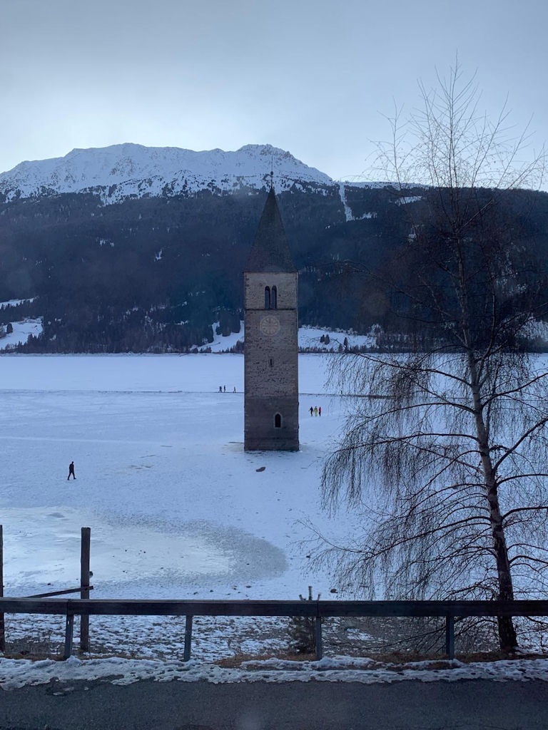 Op dinsdag heeft onze chauffeur ons een dagje naar San Valentino gebracht. Een plaatsje net over de Italiaanse grens op ongeveer twintig minuten rijden vanaf Nauders. Het was onvervalst ‘Kaiserwetter’, strakblauwe lucht en een heerlijk zonnetje. Een deel van de groep probeerde hier de pistes uit en de meeste wandelaars hebben een rondje om de Haidersee gewandeld. Na de wandeling genoten van een welverdiende lunch en aan het einde van de middag terug naar het hotel.