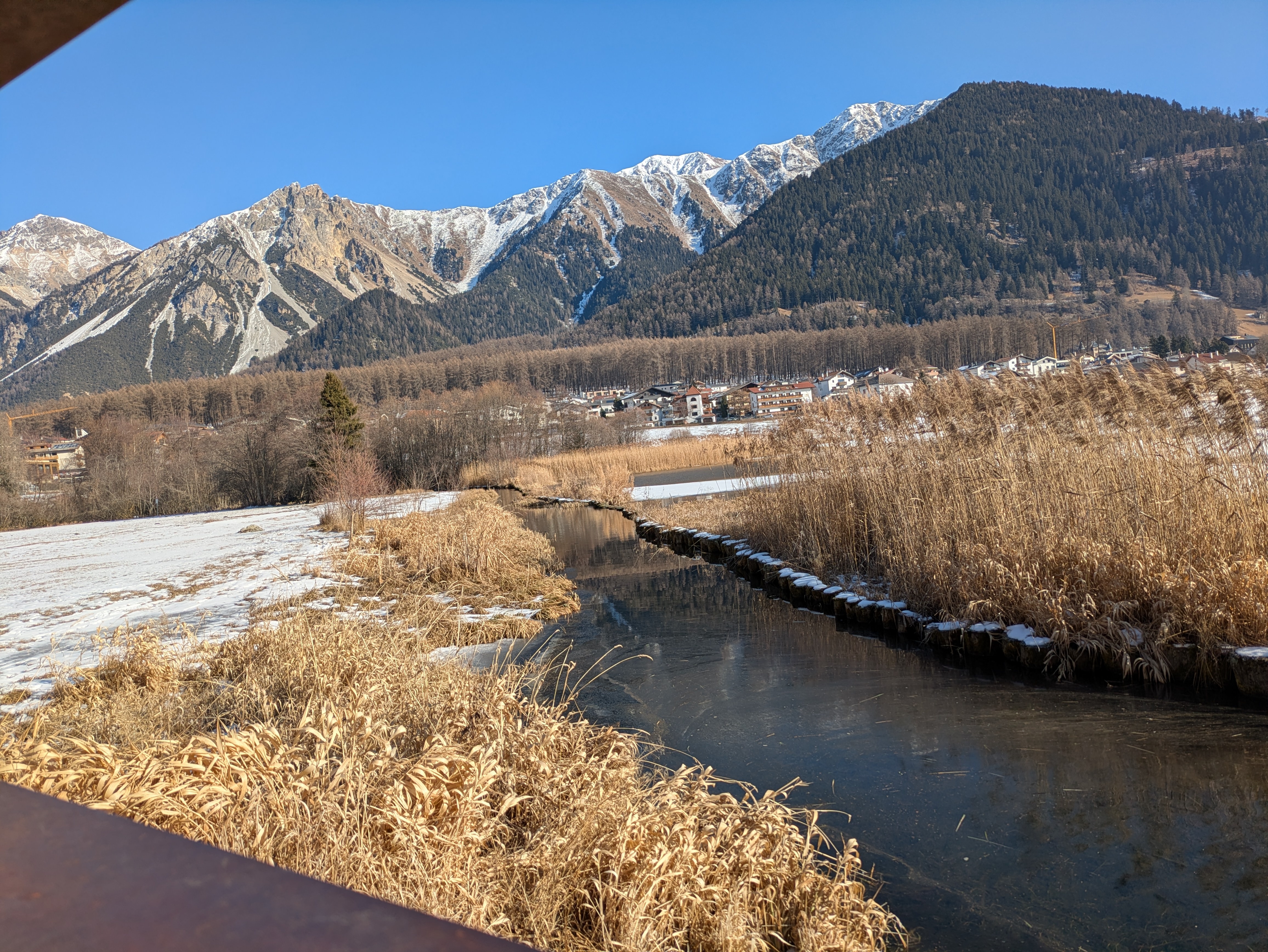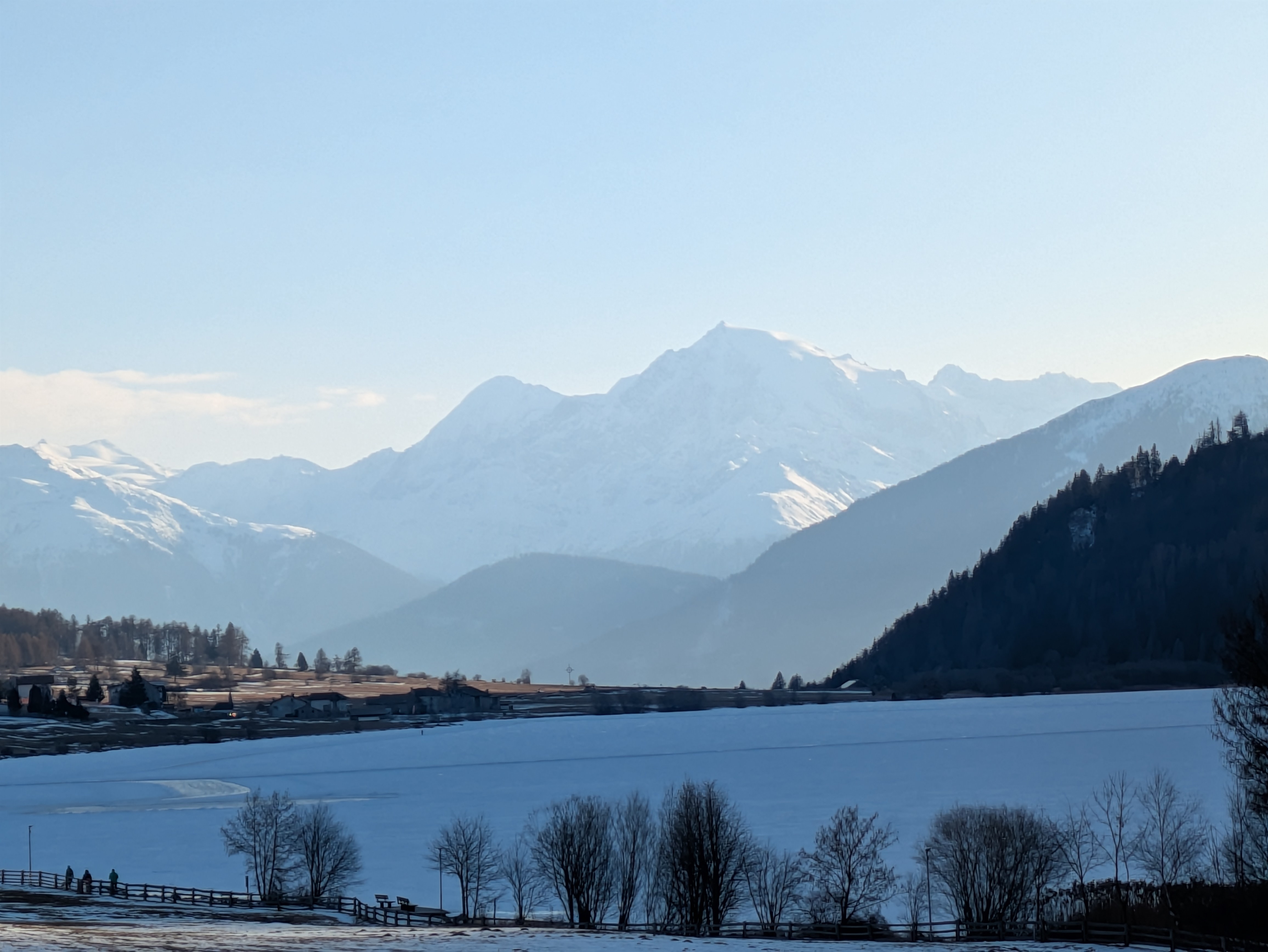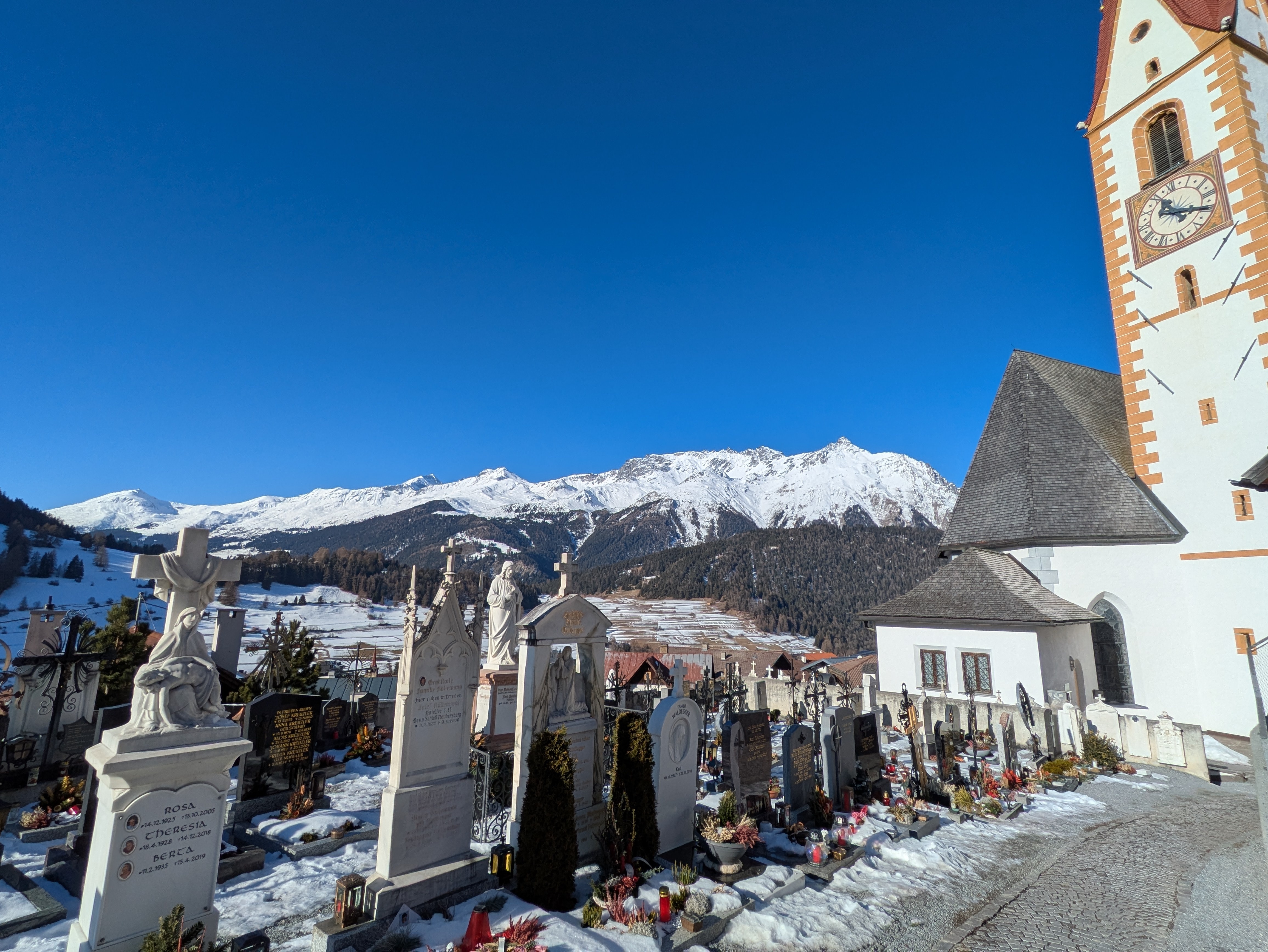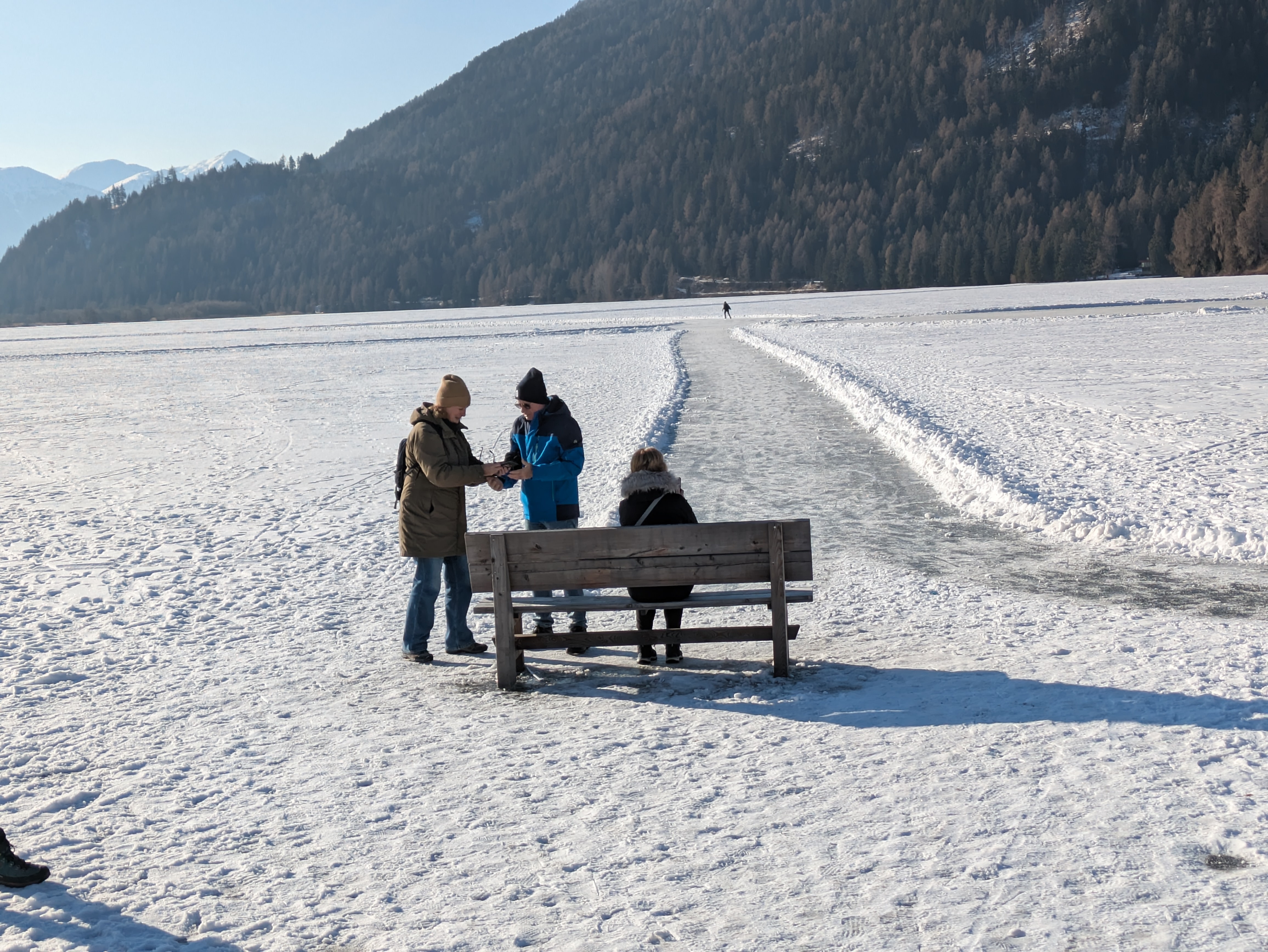 Op dinsdag heeft onze chauffeur ons een dagje naar San Valentino gebracht. Een plaatsje net over de Italiaanse grens op ongeveer twintig minuten rijden vanaf Nauders. Het was onvervalst ‘Kaiserwetter’, strakblauwe lucht en een heerlijk zonnetje. Een deel van de groep probeerde hier de pistes uit en de meeste wandelaars hebben een rondje om de Haidersee gewandeld. Na de wandeling genoten van een welverdiende lunch en aan het einde van de middag terug naar het hotel.
